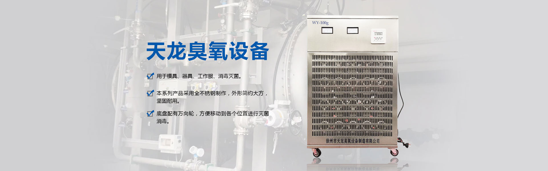 公司專(zhuān)業(yè)生產(chǎn)內(nèi)置、外置、移動(dòng)式臭氧發(fā)生器、水處理臭氧消毒機(jī)、臭氧滅菌柜等八大系列、一百多個(gè)品種的產(chǎn)品。廣泛應(yīng)用在制藥廠(chǎng)、水廠(chǎng)、食品飲料加工、醫(yī)療衛(wèi)生、農(nóng)業(yè)種植、冷庫(kù)果蔬冷藏與保鮮等。